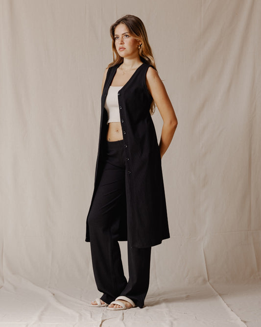 طقم بدون أكمام بأزرار - أزرق مخضر