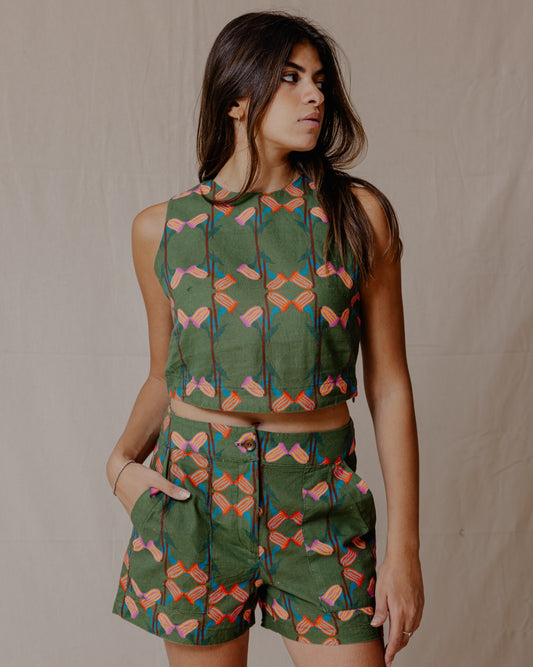 طقم عباءة بخطوط هندسية باللون الزيتوني