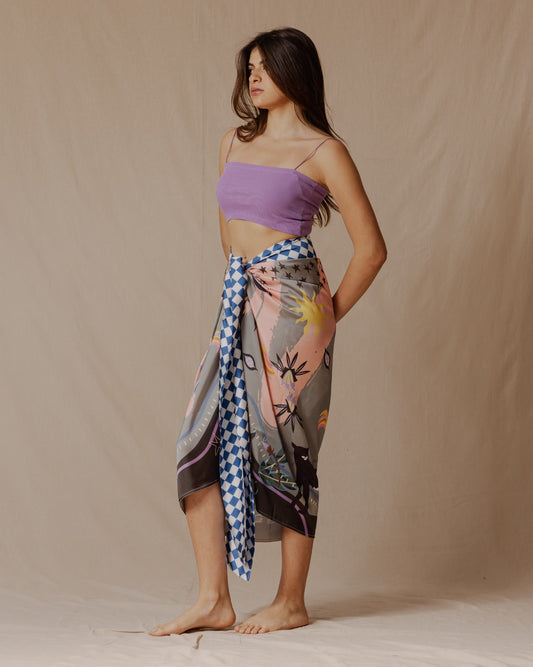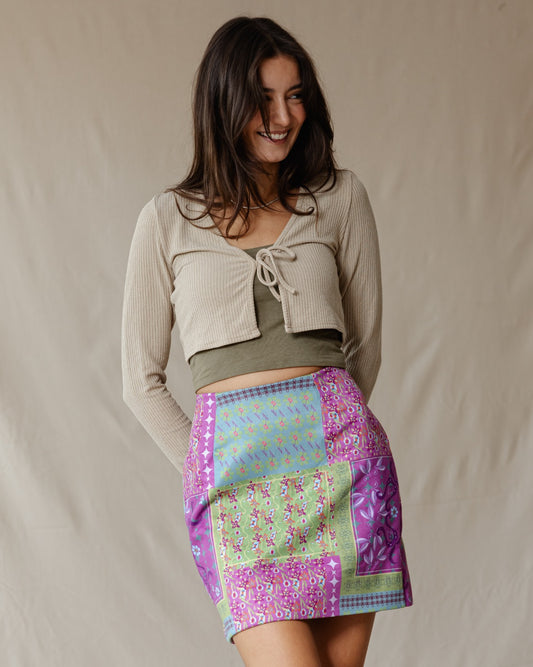 تنورة من جلد الغزال بطبعة أزهار الخزامى