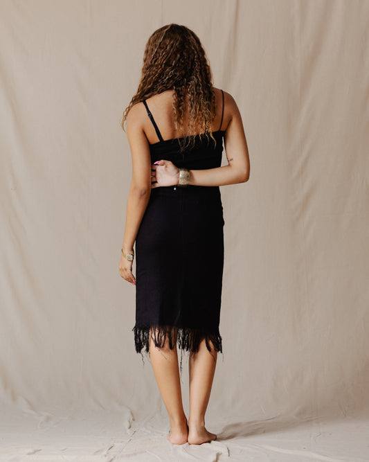 تنورة بوهو مزينة بالشراشيب باللون البيج