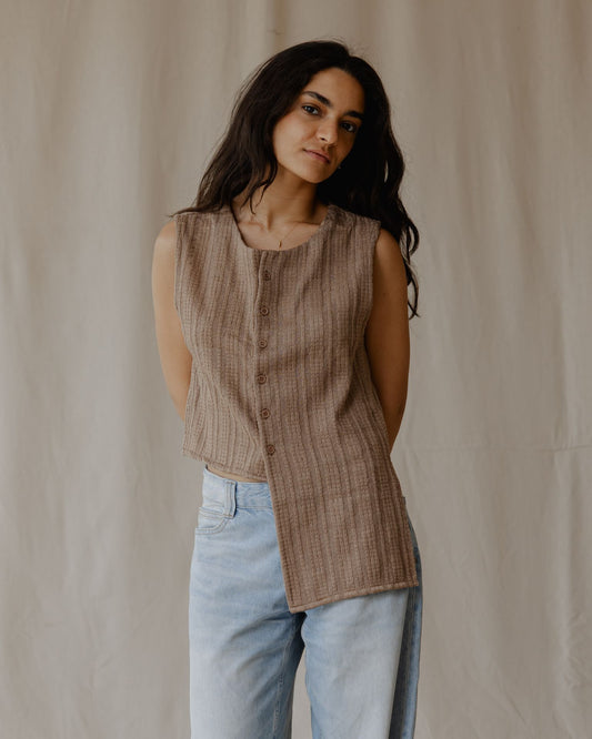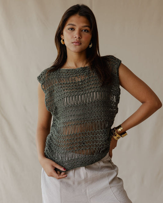 سترة ملتوية ومنسوجة باللون الزيتوني