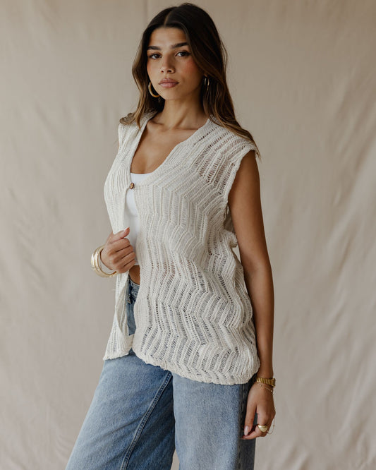 بلوزة كروشيه متباينة اللون أبيض عاجي