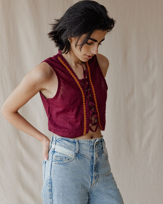 سترة مطرزة من Sunflare Gecko باللون العنابي