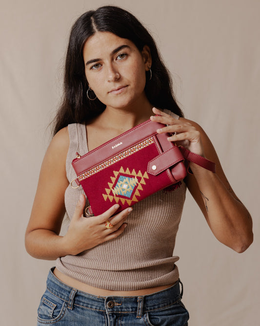 محفظة نسيج قبلية باللون العنابي