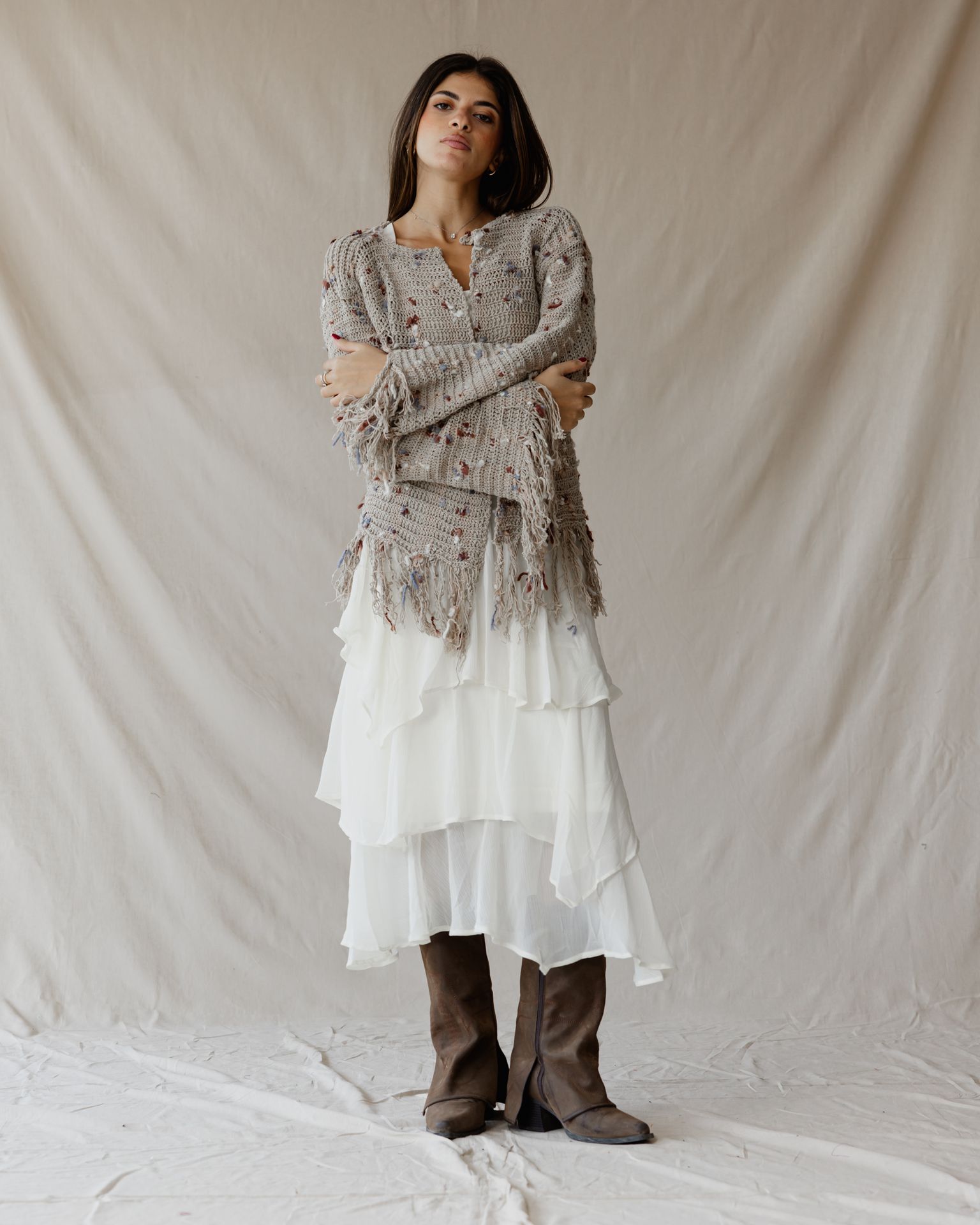 كارديجان محبوك منقط باللون البيج