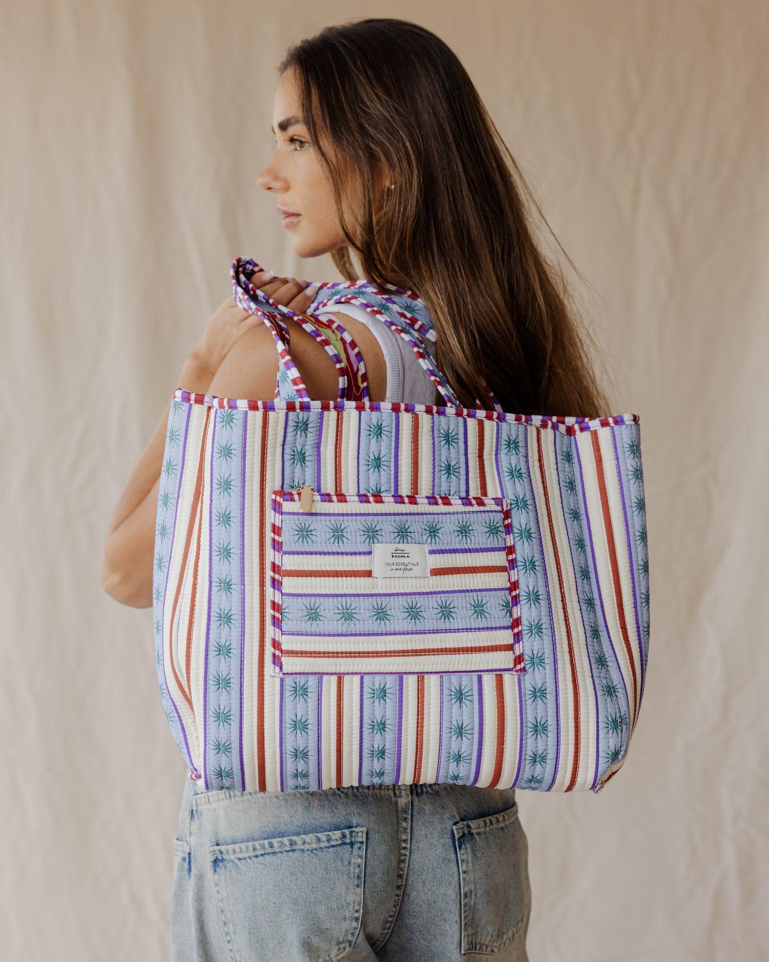 حقيبة تسوق مبطنة بنقشة الزهور والخطوط
