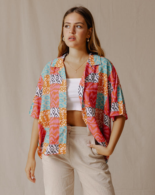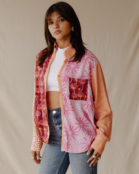 Summer Patchwork Shirt Pink