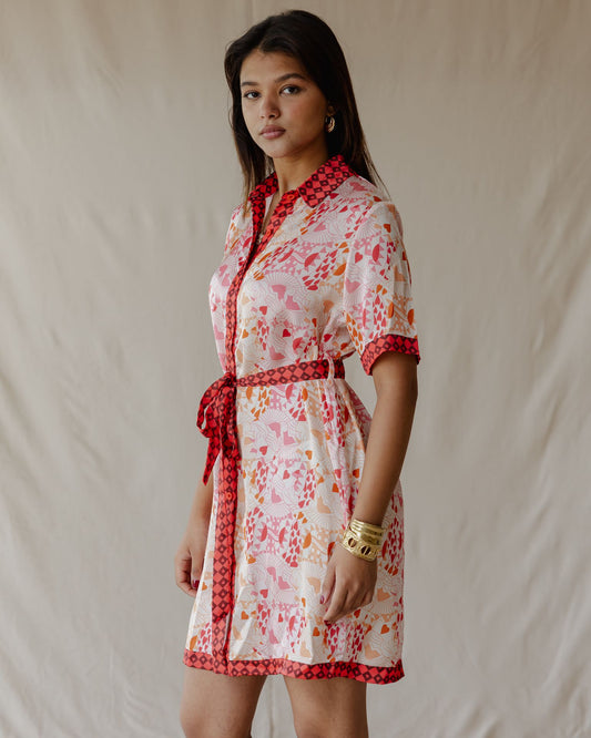 Queen of Hearts Satin Shirt Dress