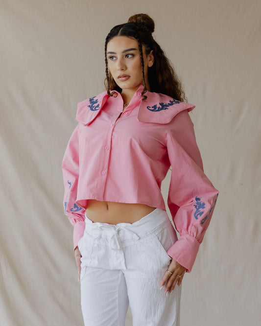 Baroque Collar Pink Shirt