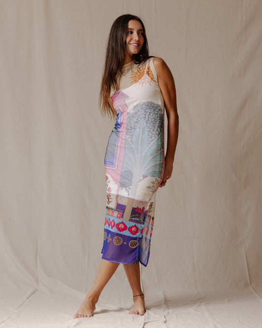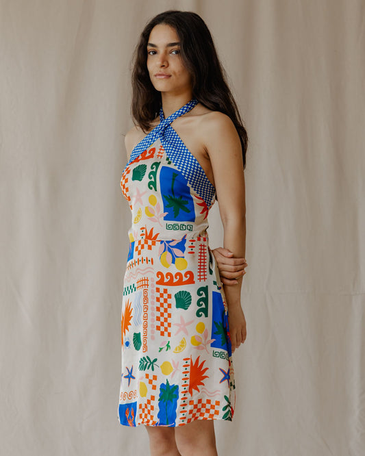 Seaside Mosaic Satin Dress