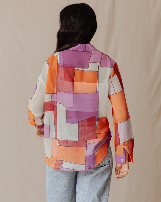 Patchwork Chiffon Shirt Orange X Purple