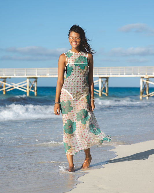 Tropical Mesh Dress in Off-White