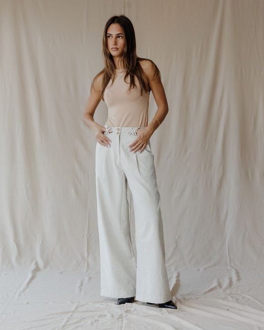Side-tie Linen White Pants
