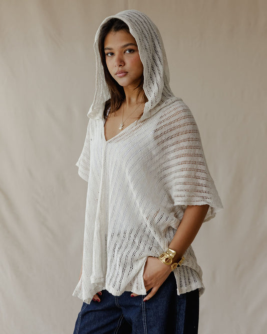 Summer Knit Poncho Off-White