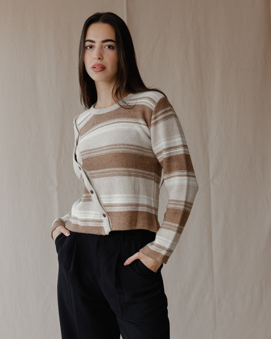 Asymmetrical Wool Top Beige X Cafe