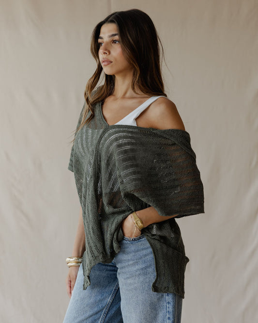 Summer Knit Poncho Olive
