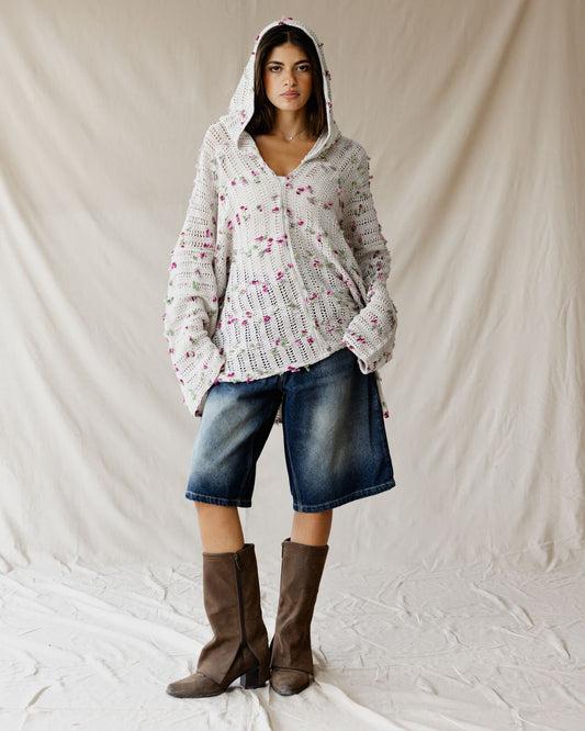 Cream Speckle Tricot Hoodie