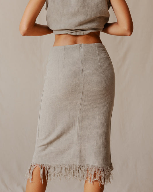 Fringed Boho Skirt Beige