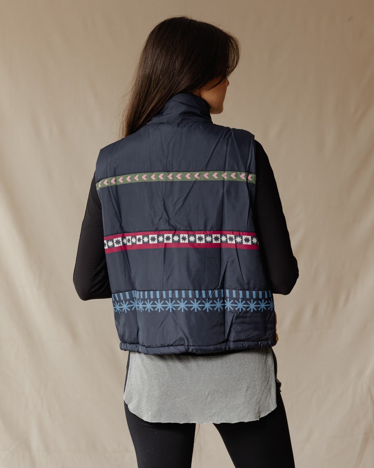 Featuring a unique print and waterproof material, this vest keeps you protected during unpredictable weather.