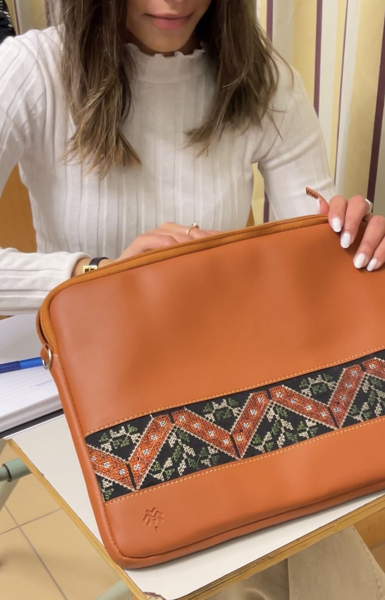 The Etamine Laptop Sleeve combines padded protection with cultural artistry. Lightweight, stylish, and available with strap for easy carrying.