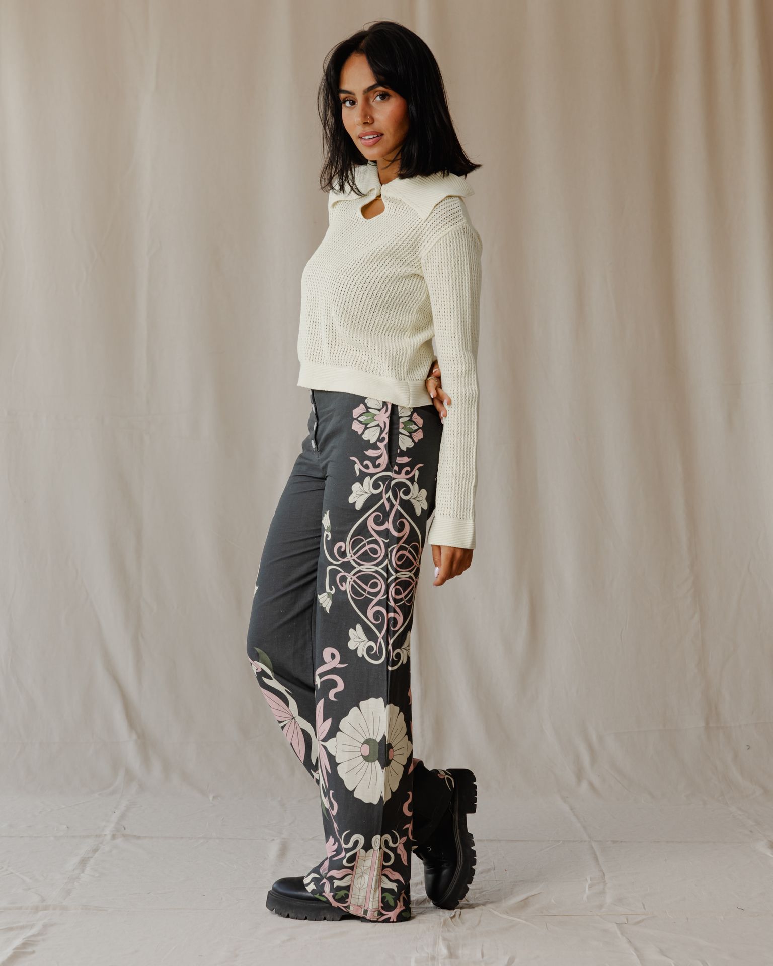 These wide-leg pants are all about easy style. They're super comfortable and have a fresh, modern floral print that makes them stand out. You can wear them with a simple top for a casual look or dress them up for a fun night out.