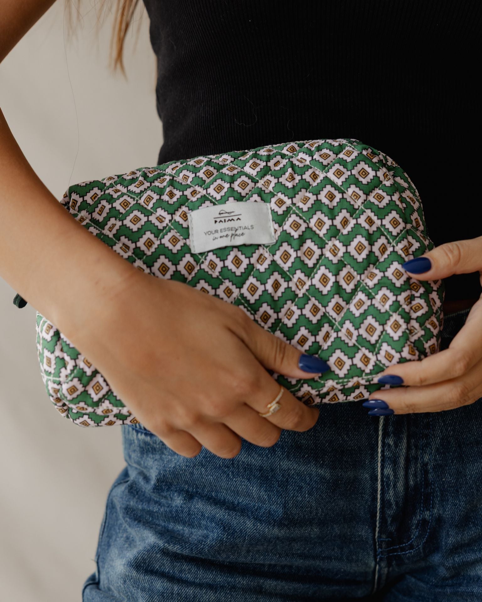 Organize all your makeup essentials in one place. This quilted makeup bag will fit everything you need and more!