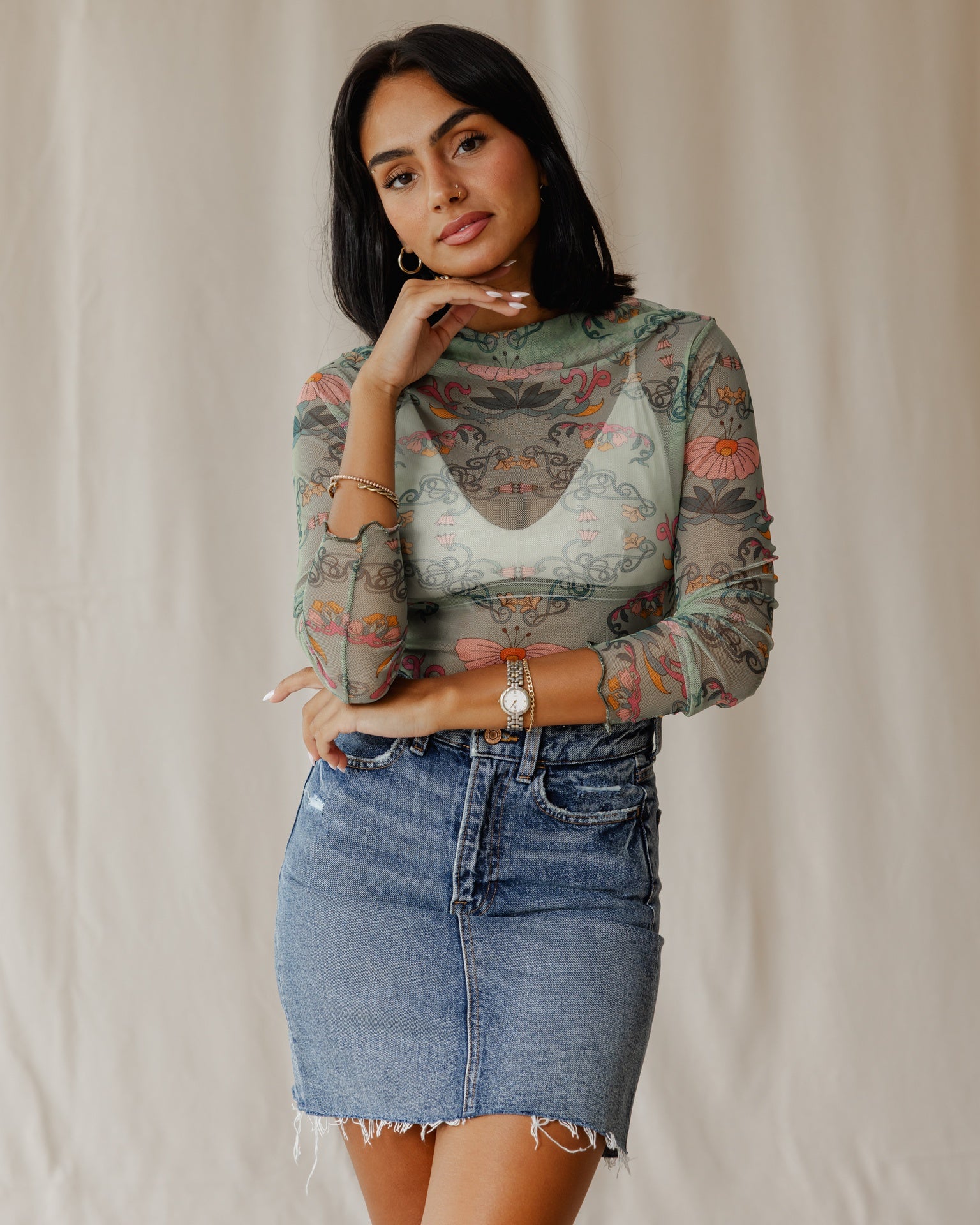 Get ready to shine in this printed mesh top. With its lightweight material and vibrant design, it’s perfect for adding a touch to any outfit."