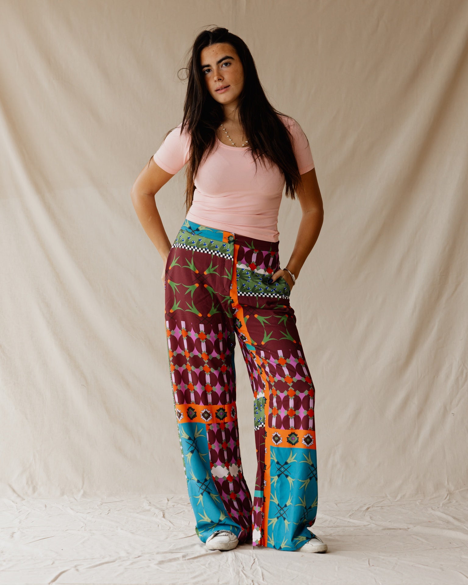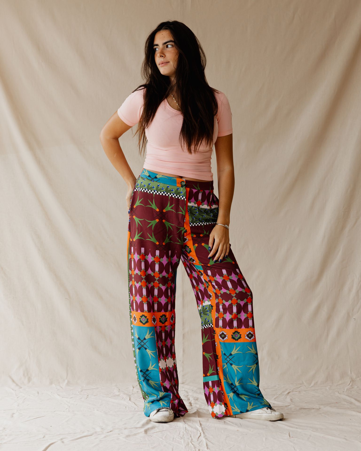 Effortlessly chic wide-leg pants with bold prints and a soft, flowy feel.