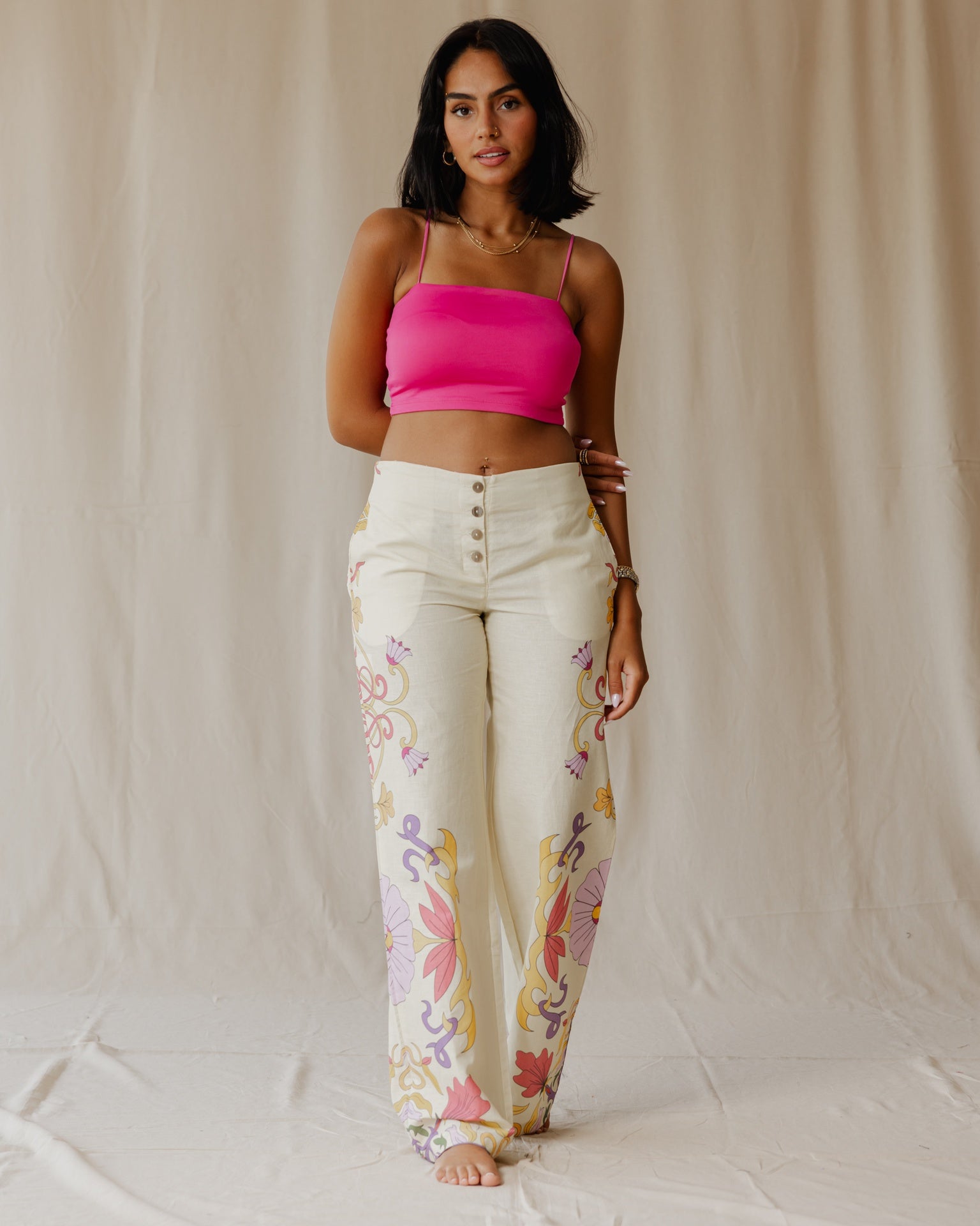 Sunlit Petal Muse Linen Pants